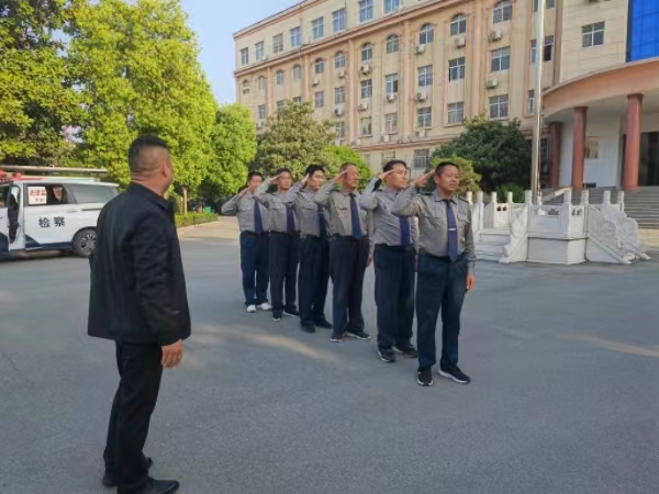 為了進一步加強公司保安隊伍整體素質(zhì)和服務(wù)質(zhì)量,提高保安服務(wù)意識、紀律意識和團隊協(xié)作能力,增強保安員的凝聚力、向心力和保障力,提升隊員在工作中的積極性,提高服務(wù)質(zhì)量、促進保安隊伍建設(shè),為樹立我分公司良好的企業(yè)形象打下堅實基礎(chǔ)。2024年4月18日平輿分公司利用晨會時間組織檢察院崗點保安員大練兵。