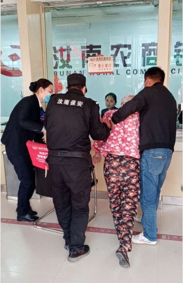 2020年11月11日下午,前來汝南縣農商銀行三門閘支行營業(yè)部辦理業(yè)務的客戶絡繹不絕,工作人員正忙碌著手頭的工作,保安員們像往常一樣巡視著廳堂,馬狗窩同志發(fā)現(xiàn)門外過來一輛小汽車,但車內人遲遲不下車,于是馬狗窩同志走到車前一看,一位老年人在車上坐著無法行走,她的孩子慢慢的將她移到車外,馬狗窩同志立即上前詢問得知是前來辦理業(yè)務的,由于業(yè)務特殊必須本人前來辦理,馬狗窩同志幫助客戶把老年人從車上抬下來坐到營業(yè)大廳的椅子上,大堂經(jīng)理李愛耐心詢問客戶需求,填寫單據(jù),幫助客戶解決問題,客戶對耐心細致的服務表示非常滿意,連連稱贊。