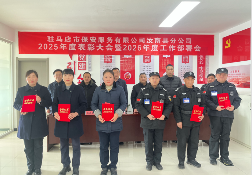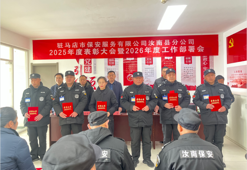 返回舊版?2026年3月8日,汝南份公司2025年度先進集體、先進個人表彰大會在公司會議室隆重召開。會議全面回顧2025年安保工作成效,隆重表彰在各項任務中表現(xiàn)突出的先進典型,動員全體員工以榜樣為力量,奮力譜寫公司高質(zhì)量發(fā)展新篇章。公司領(lǐng)導班子、各部門負責人、受表彰代表及全體機關(guān)員工齊聚一堂,共同見證榮耀時刻。