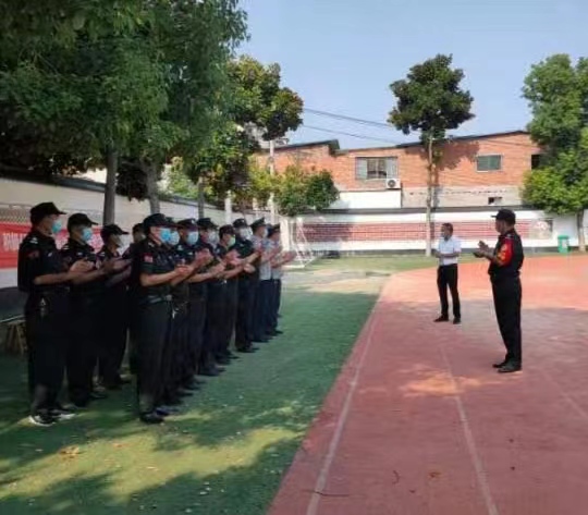 為進一步落實校園安全防范,提高保安隊員的專業(yè)技能,強化處置突發(fā)事件的能力,更好地維護校園環(huán)境的穩(wěn)定,公司特聘請縣公安局古呂派出所干警給學校保隊員授課。