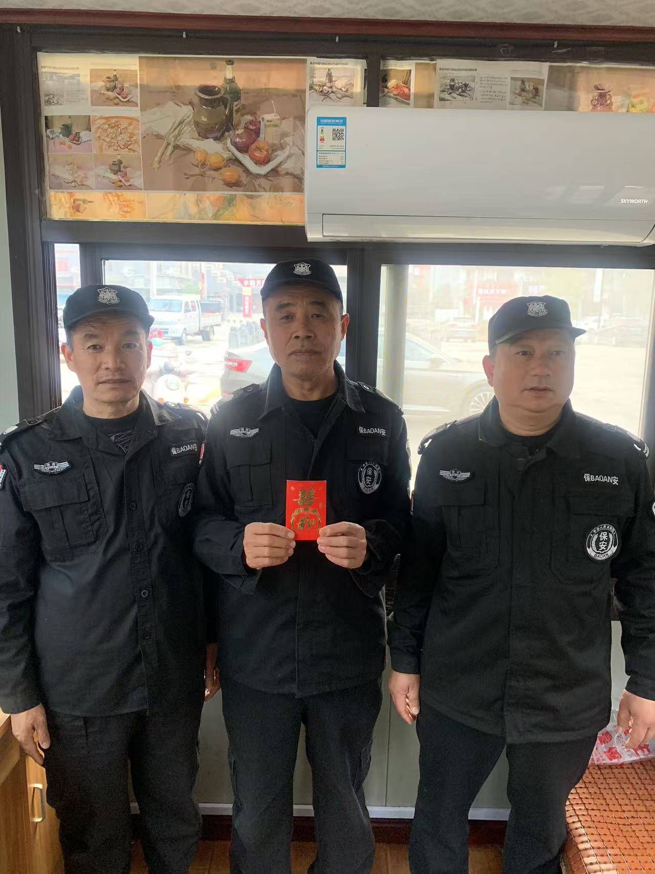 特別對(duì)當(dāng)天值班保安黃敏華同事的感謝,獎(jiǎng)勵(lì)黃敏華同事一個(gè)紅包,并購(gòu)買了慰問品對(duì)該小區(qū)全體保安人員進(jìn)行慰問!