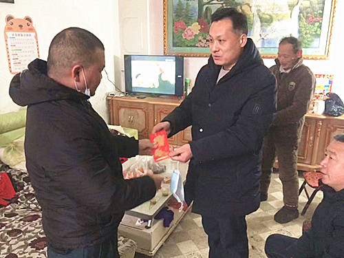 在慰問活動中,慰問小組將面粉、大米、食用油,慰問金送到張草原家中,并與家人親切交談,了解詢問他們身體健康狀況、家庭收入等情況,同時祝福他們新春快樂、身體健康。