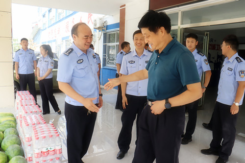 分公司高經(jīng)理帶隊先后來到縣巡特警大隊,親切慰問高溫奮戰(zhàn)在一線的公安民警、輔警、等基層工作者,并送上防暑降溫慰問品。
