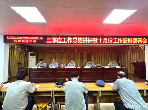 返回舊版?2024年9月29日晚6:30分,西平縣分公司在公司五樓會議室召開人防、物業(yè)第三季度工作講評總結(jié)暨十月工作安排部署會。分公司副經(jīng)理冀學軍、孫勇、趙國平及來自基層的大、中、小隊長共計六十余人參加此次會議。