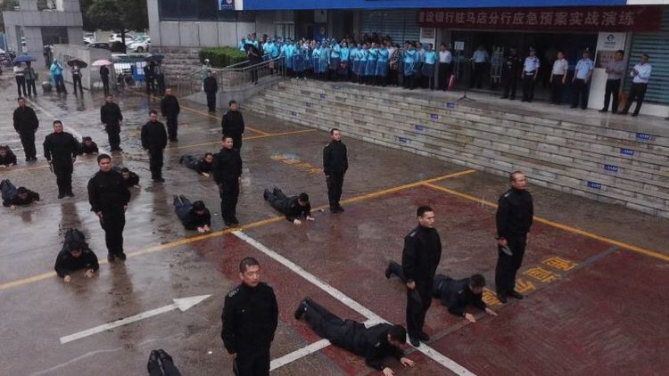 為全力貫徹省公安廳及省分行《關于在銀行業(yè)金融機構開展應急預案演練活動的通知》精神,切實做好建設銀行駐馬店分行的安保防衛(wèi)工作。駐馬店市保安服務公司聯(lián)合建設銀行駐馬店分行于2018年9月17日開展了一場全方位的防搶應急實戰(zhàn)演練。市公安局治安支隊、市銀監(jiān)局、市建設銀行等單位領導出席了本次活動。駐馬店市保安服務公司董事長姚紅衛(wèi)在押運分公司經理鄧繼國的陪同下也應邀到場并觀摩了此次演練。建行守押中隊中隊長鄭迎利攜中隊18名隊員與農商行守押中隊12名隊員參加了此次演練?! ?/span>