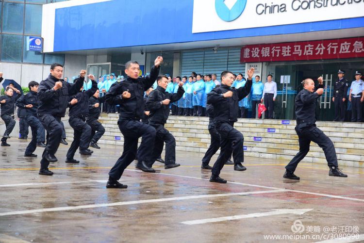 此次演練共包括擒敵拳表演、擒敵配套表演、押運過程中道路防搶演練、解款過程防搶演練、自助設備ATM機取款防搶演練、營業(yè)期間挾持客戶防搶演練等六個科目。中午12點30分,天空突降大雨。場地變得異常濕滑,給此次演練增添了不少困難。但是隊員們熱情絲毫不減,擒敵拳與擒敵配套,隊員們依然剛勁有力,整齊劃一,無論是流水作業(yè)還是連貫動作都一氣呵成。而在防搶演練中,大家眾志成城,集結有序、反應迅速、分工明確、冷靜果敢、配合緊密,充分起到了對犯罪行為的震懾作用?! ?/span>