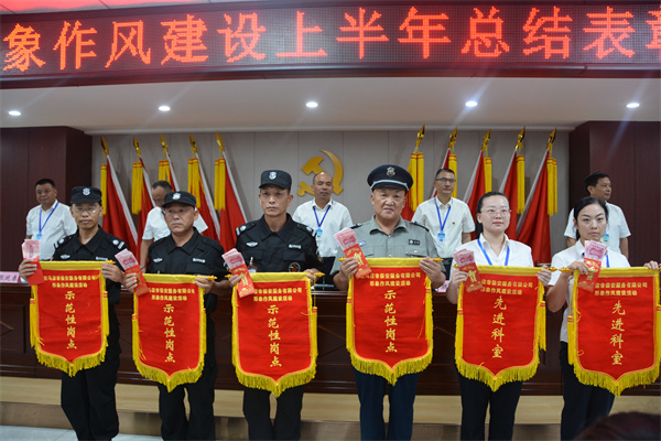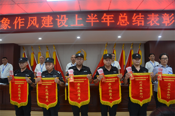 總結(jié)表彰大會由公司黨總支副書記魏煒主持,重點明確了此次總結(jié)表彰大會對推動形象作風(fēng)建設(shè)工作更好開展所具有的重要意義;副總經(jīng)理鄧?yán)^國對2024年上半年形象作風(fēng)建設(shè)年工作開展情況進(jìn)行了講評,總結(jié)了成績,查找了不足,指出了下步措施;監(jiān)事長陳公偉宣讀了《2024形象作風(fēng)建設(shè)上半年表彰獎勵通報》,對考評過程和考評結(jié)果進(jìn)行了通報。