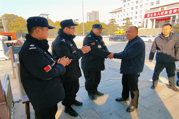 新春的第一縷陽(yáng)光灑滿(mǎn)了公司各個(gè)角落,張建輝一行首先來(lái)到了人防分公司基層一線(xiàn)崗點(diǎn)。每到一個(gè)崗點(diǎn),張建輝都與值班人員親切握手,向大家拜年!并對(duì)在春節(jié)假日期間仍堅(jiān)守崗位、默默奉獻(xiàn)的員工們給予了高度贊揚(yáng),并勉勵(lì)大家要繼續(xù)以飽滿(mǎn)的熱情和嚴(yán)謹(jǐn)?shù)膽B(tài)度,確保春節(jié)期間的安全保衛(wèi)工作萬(wàn)無(wú)一失。他深情地說(shuō):“你們是公司最寶貴的財(cái)富,你們的辛勤付出是公司穩(wěn)定發(fā)展的堅(jiān)強(qiáng)保障。”