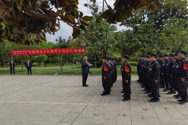 考核结束后,教导员陈新进行总结讲评,充分肯定了平舆押运大队近一个月的训练效果,并高度评价了参考队员场上场下严肃认真、令行禁止的队列表现。陈导针对春季大练兵活动强调指出,大家要正确认识开展岗位练兵活动的重要意义,通过训练不断强化令行禁止的纪律意识,培养扎实过硬的队列素质和雷厉风行的工作态度,增强生活作风纪律的养成,有效促进押运队伍正规化管理,安全顺利完成好各项押运任务,为客户单位业务开展提供坚实有力的保障。