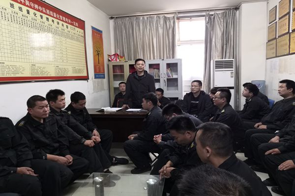 在谈到平舆中队的训练情况时,邓总通过总结平舆中队历次大练兵考核成绩,指出了平舆中队的擒敌拳和擒敌配套训练是薄弱环节,尤其是擒敌配套科目在动作和相互配合上,还需要加强和改进。邓总还强调,今年的秋季大练兵科目没有改变,但是奖项设置有较大调整,这样更能分出强弱,拉开差距,这也对我们的训练提出更高的要求,希望大家在训练中更加用心,更加努力,更加刻苦,争取获得更好的成绩和更高的名次!随后,邓总和周主任到平舆中队守库室现场检查了值班情况,要求值班队员要严格落实制度,确保规范安全。